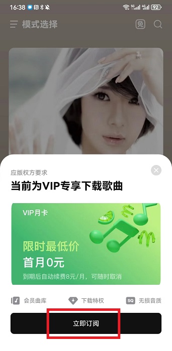 4、这个会员可以通过看两个广告获得一天的会员,就可以免费的进行下载,可以选择不同的音质。