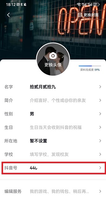 3、在个人信息编辑界面中,我们就可以看到【抖音号】,点击抖音号就可以进入到修改界面;