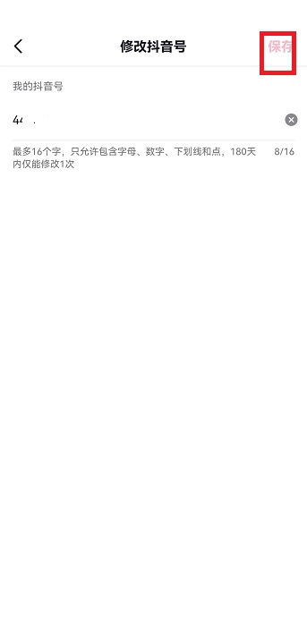 4、修改界面中hi只需要按照要求完成编辑就就可以点击右上角的【保存】完成抖音号的修改。