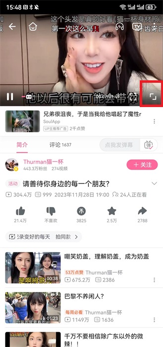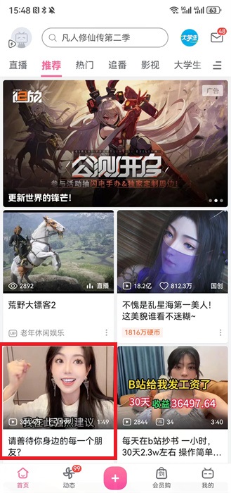 1、打开哔哩哔哩软件,在软件首页打开任意一个视频,去进行查看在线人数;