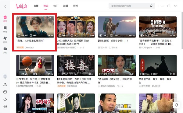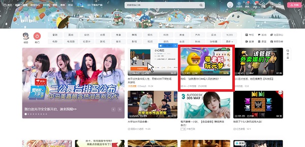 1、进入到哔哩哔哩的网页端界面,在界面中还是随便寻找一个视频,点击进入到视频播放界面;