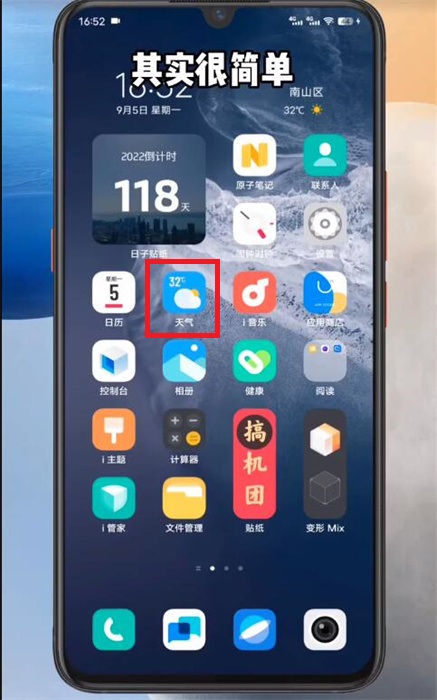 1、在我们的手机上,找到【天气】app,这个是我们手机自带的,打开进入到天气软件之中;