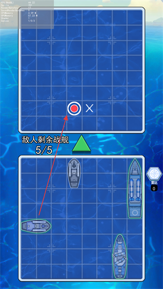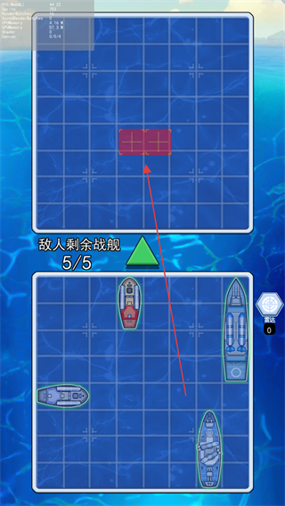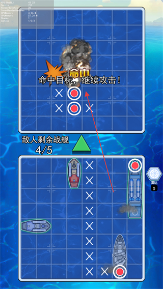 4、持续攻击敌方战舰的所有占格,击沉一艘后,继续攻击剩余战舰,直至击沉所有敌方战舰,获得胜利。
