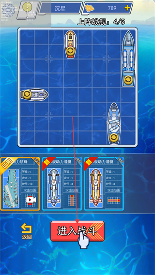 1、布置己方战舰,点击进入战斗,开启对局。