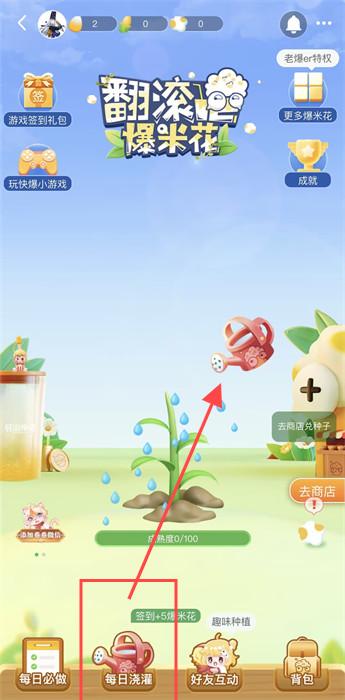 3、这里还有多种方式可促进玉米的生长,可点击最下方【每日浇灌】,即可自动浇水并增加成熟度;