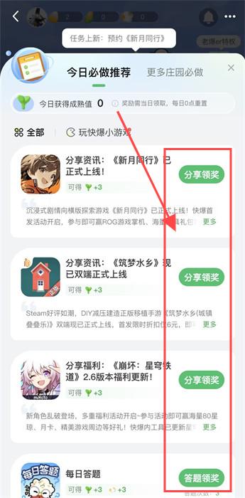 4、点击【每日必做】,这里还添加了一些可以分享获得成长值的活动,每天都可参与;