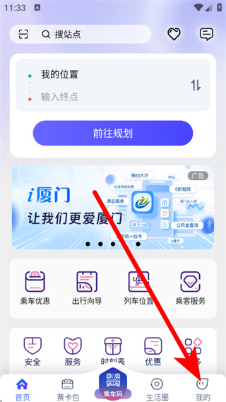 1、打开厦门地铁,点击底部的我的,进入我的页面。