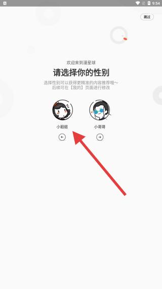 1、画面呈现了软件初始的页面,用户需要在此页面选择你的性别,能够更精准的推荐想看的内容哦。