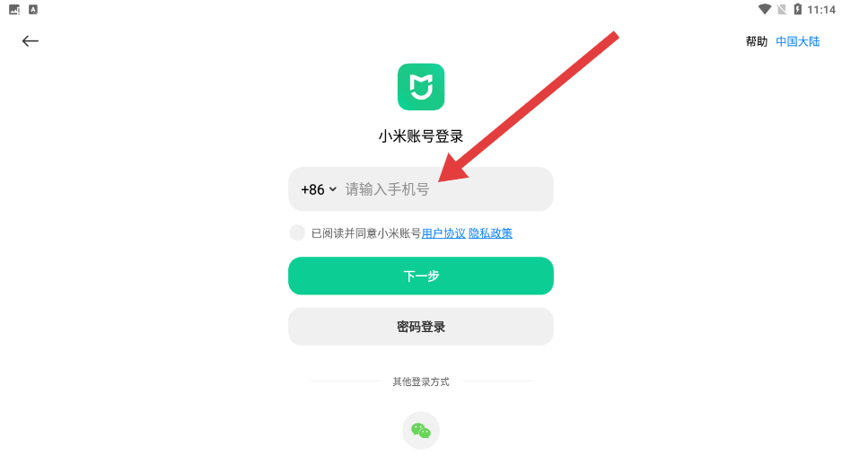 3、在登录页面中,可以输入手机号的登录方式登录账户。