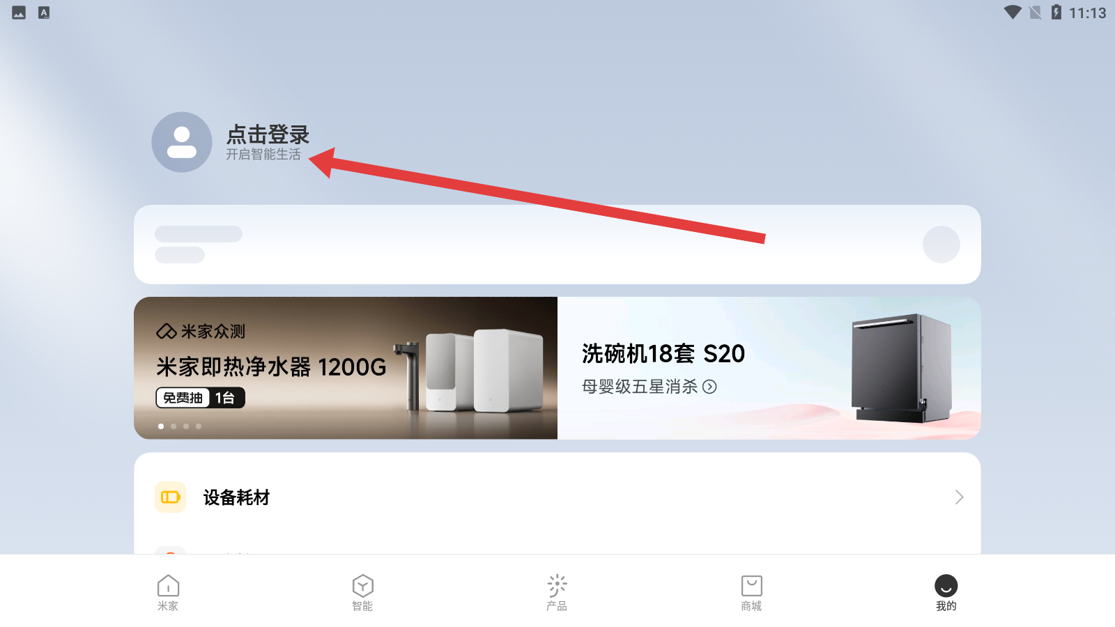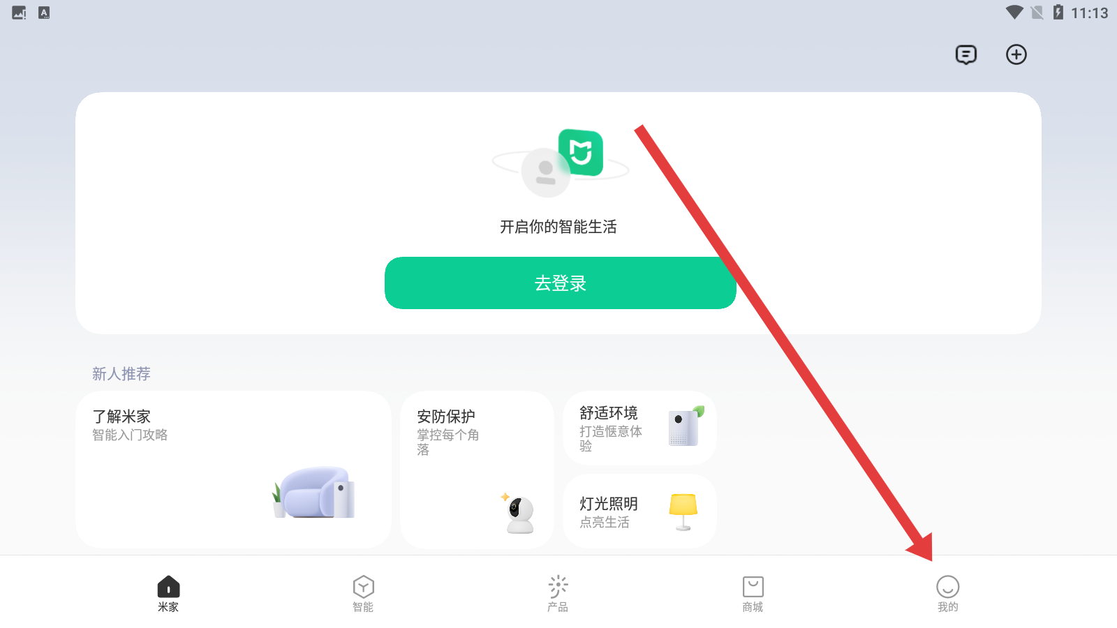 1、在米家首页中,点击底部我的图标准备跳转到我的页面。