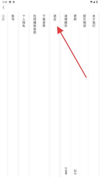3、在设置的界面内,找到并点击语言的功能按钮。