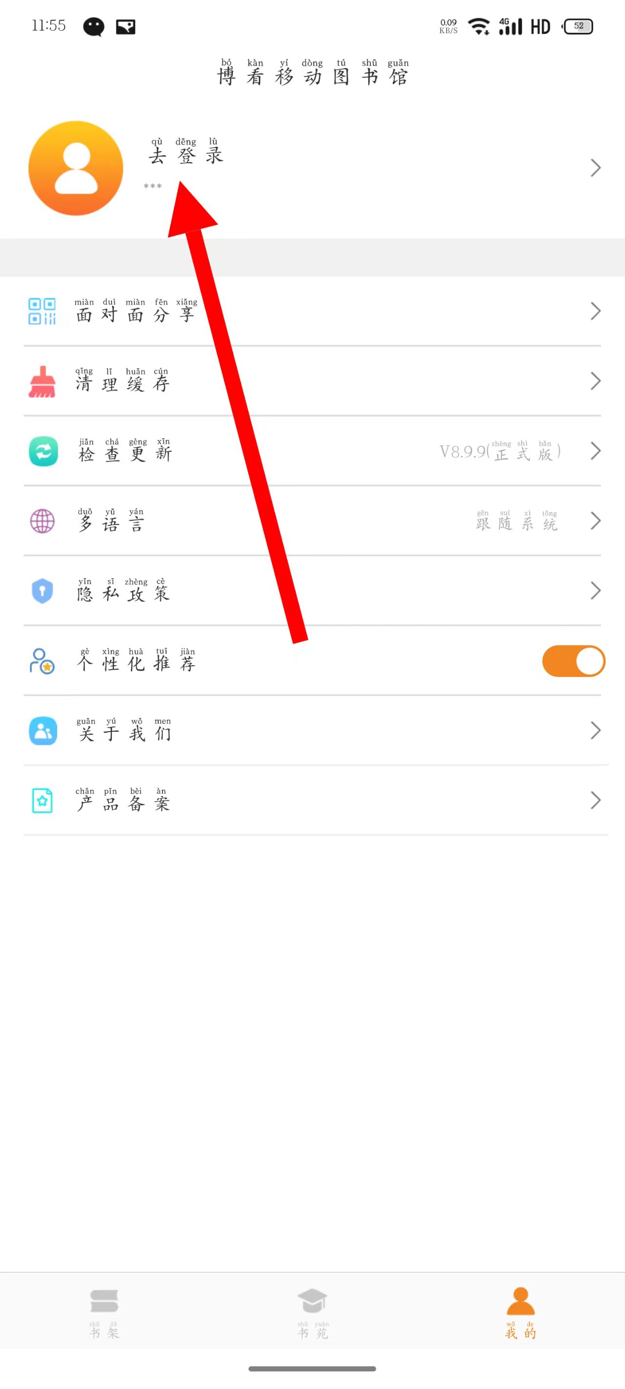 2、在我的页面,点击去登录。