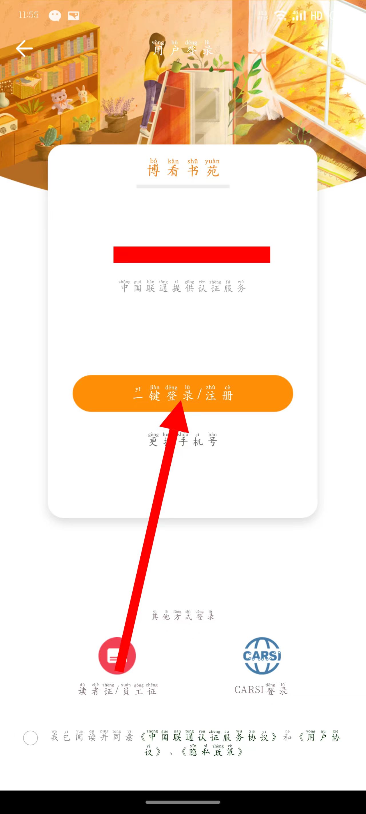 3、进入用户登录页面后,点击一键登录注册。