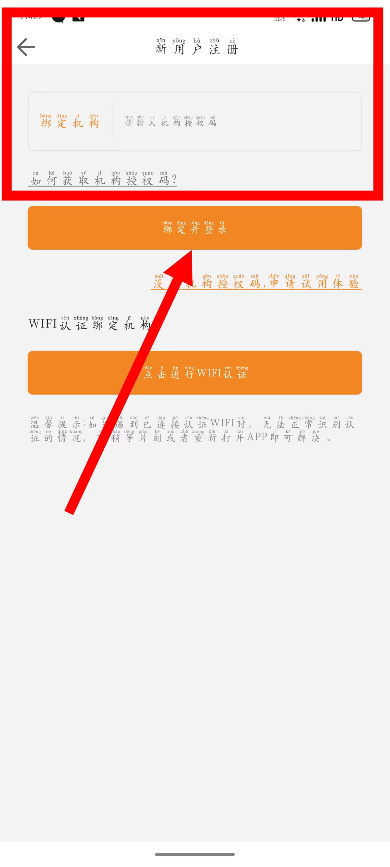 4、输入机构授权码,点击绑定并登录,即可完成注册登录流程。
