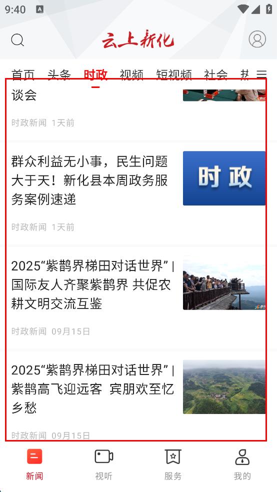 3、在时政新闻页面,浏览展示的各类时政新闻列表,选择感兴趣的新闻。