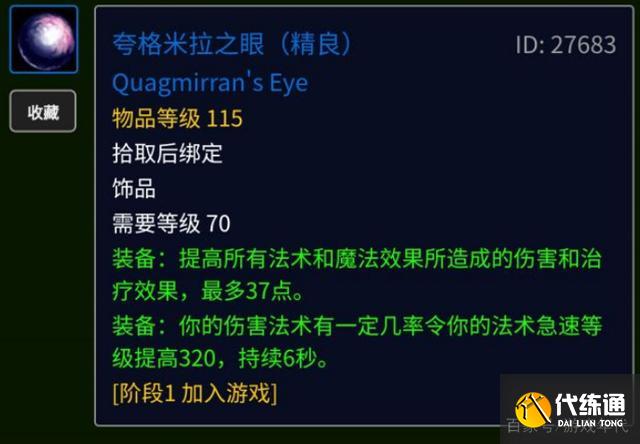 事已至此,法师只好在莫格莱尼随便刷了刷屏了事。夸眼这个东西,人称70级大石楠,最少也能用到T5团本。它的急速属性特效也是TBC早期少有的属性,掉率还非常低,刷起来比石楠麻烦一些。治疗用这个当然没任何好处,急速属性必须是伤害法术触发,不过奶萨可以换元素天赋,非要较真也不是不能用。但既然是治疗天赋进本,就不该跨天赋需求装备,这位奶萨的格局还是略低了点呀。