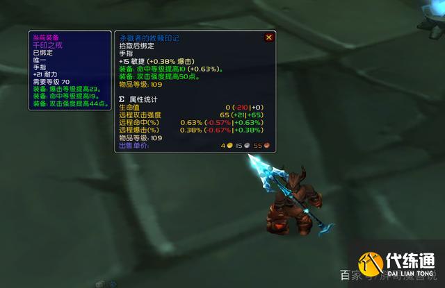 《散播敌意》奖励的物理系戒指名为“杀戮者的救赎印记”,由于这件装备不加耐力,把所有的属性都投入到了进攻项,所以这件装备也成为了敏捷系职业的“无耐之宝”。“杀戮者的救赎印记”拥有15点敏捷,10点命中以及50点攻强,综合计算之后也只是比卡拉赞尾王掉落的千印之戒差一些,而两者之间的入手难度却有着天壤之别。