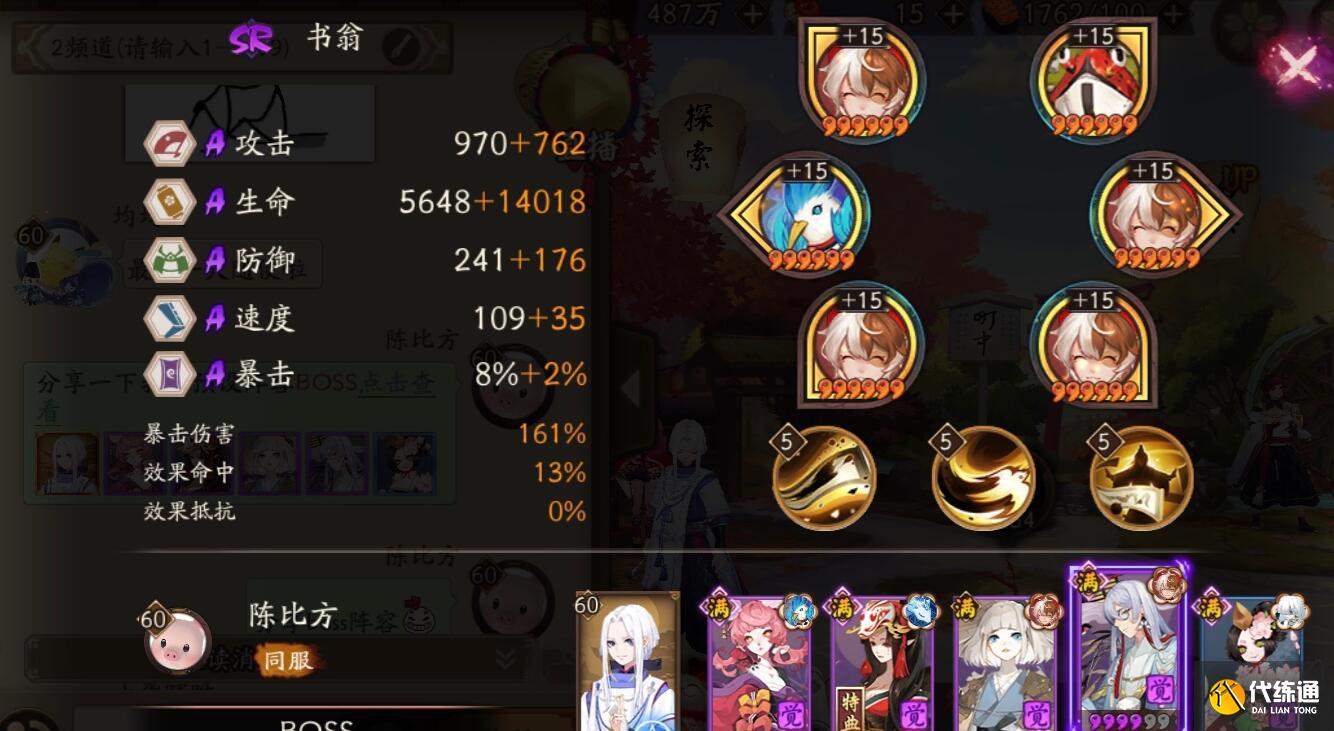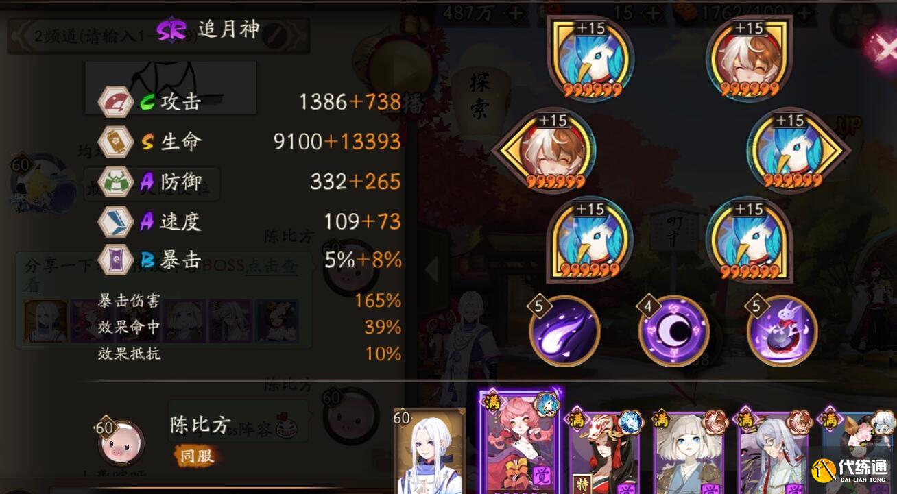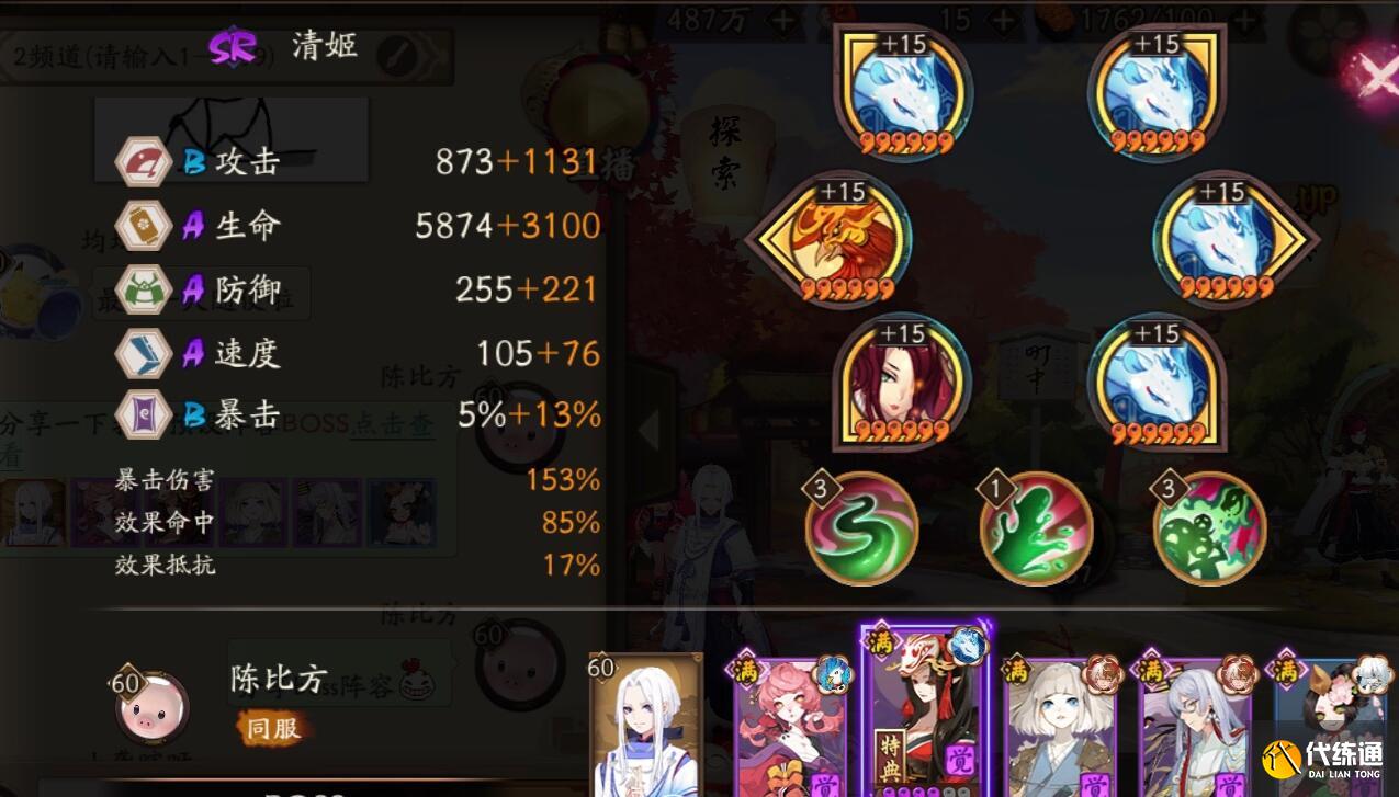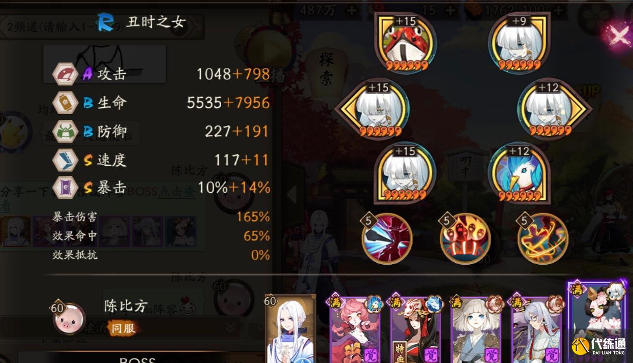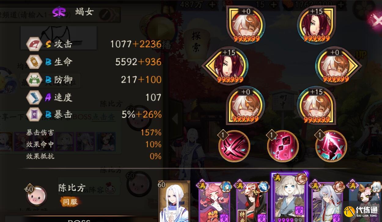 3、换无ssr/sp阵容,我用的两兔子加追月加清姬加蝎女,主要靠sp雪女输出也很快,还是走不打小怪路线,boss两分钟也可以过。